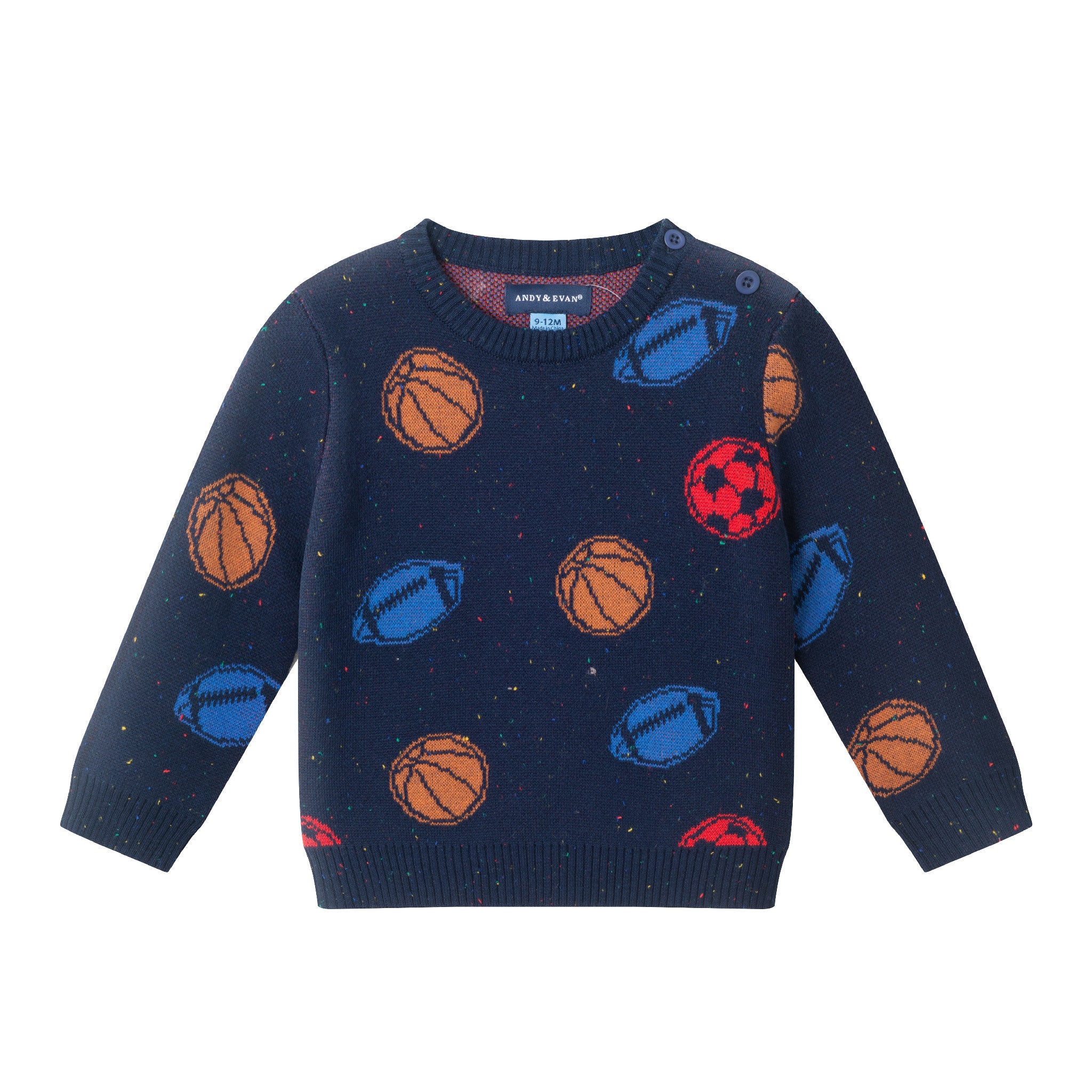 Game on! This ultra-cute navy sweater set features a playful mix of basketballs, footballs, and soccer balls, knit right into the design for sporty fun. Whether your little one’s cheering from the sidelines or crawling across the playroom, this cozy set keeps them warm, comfy, and full of all-star style.