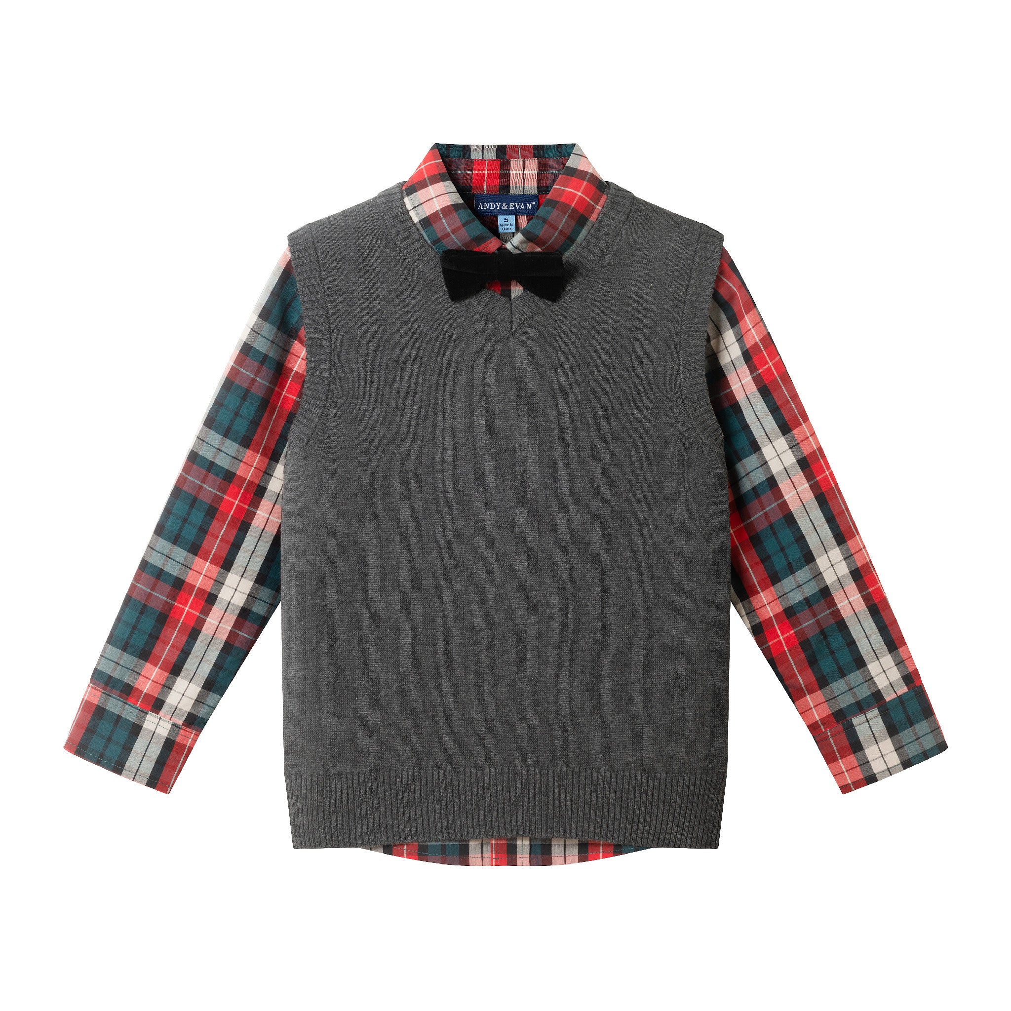 3-Piece Set: Includes plaid shirt, knit sweater vest, and pants