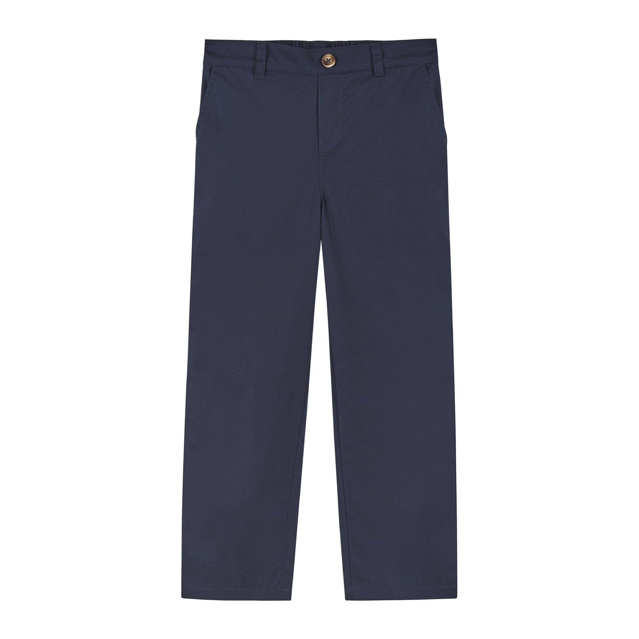 A dapper look with zero fuss! This 3-piece outfit is cleverly designed with a vest that's sewn right onto the shirt—giving the polished look of layers without restricting movement. Paired with matching twill navy pants and an easy-on bowtie, it’s the perfect all-in-one outfit for parties, holidays, or anytime they need to clean up cute.