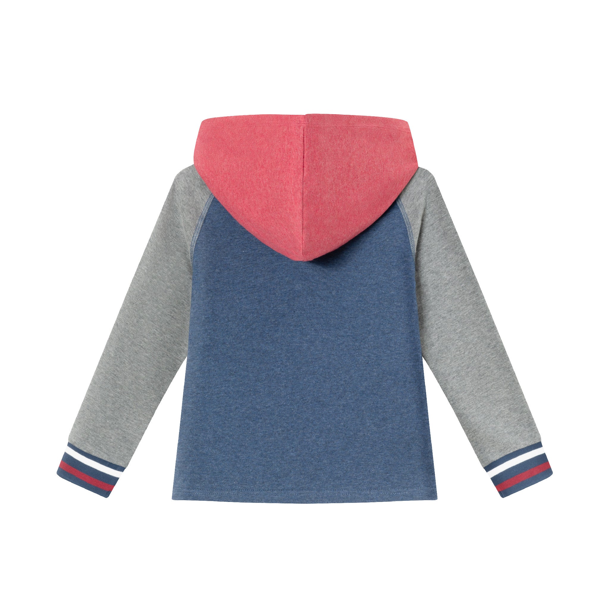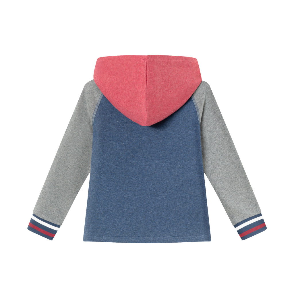 Kids Hooded Colorblocked Jersey Tee | Red Navy & Heater Grey