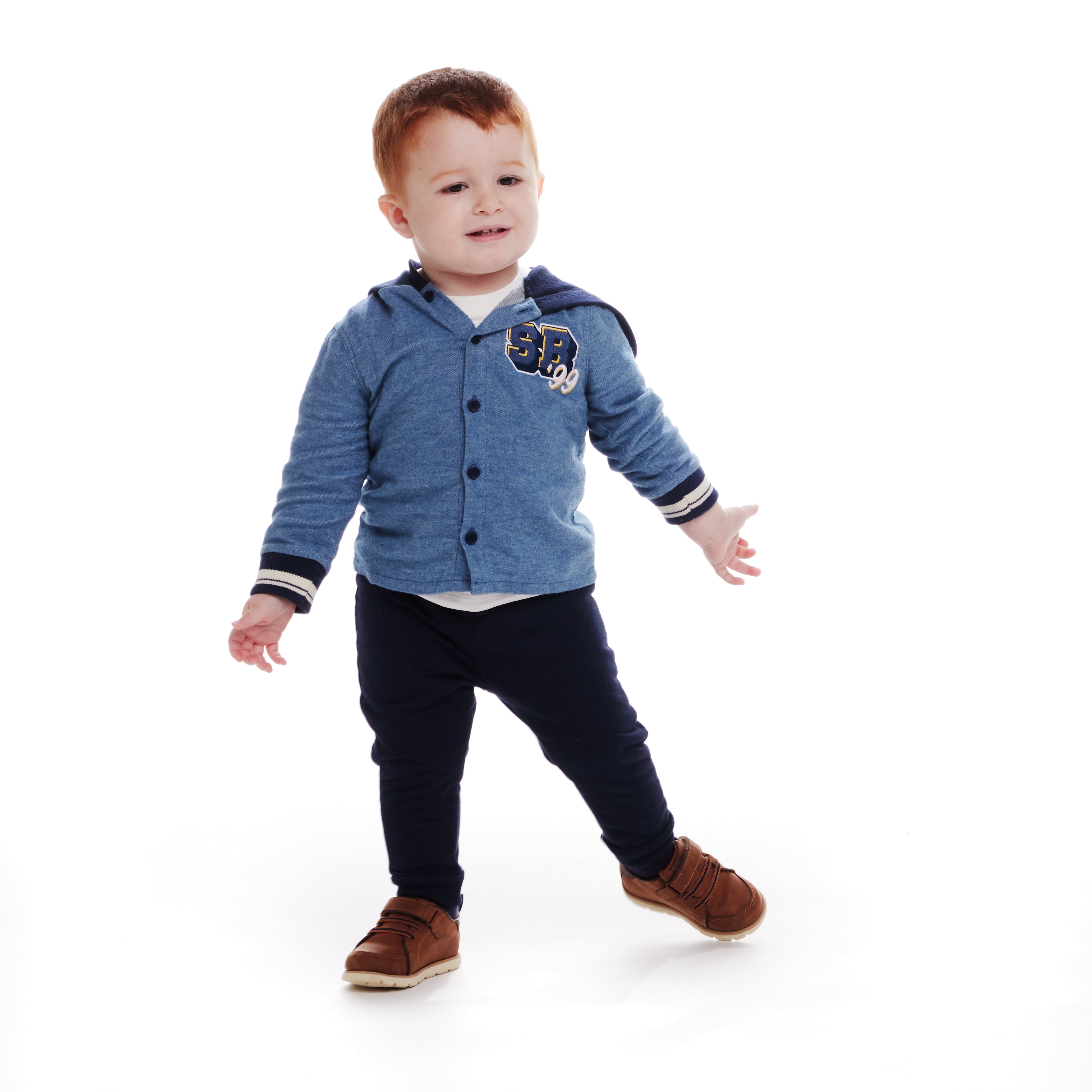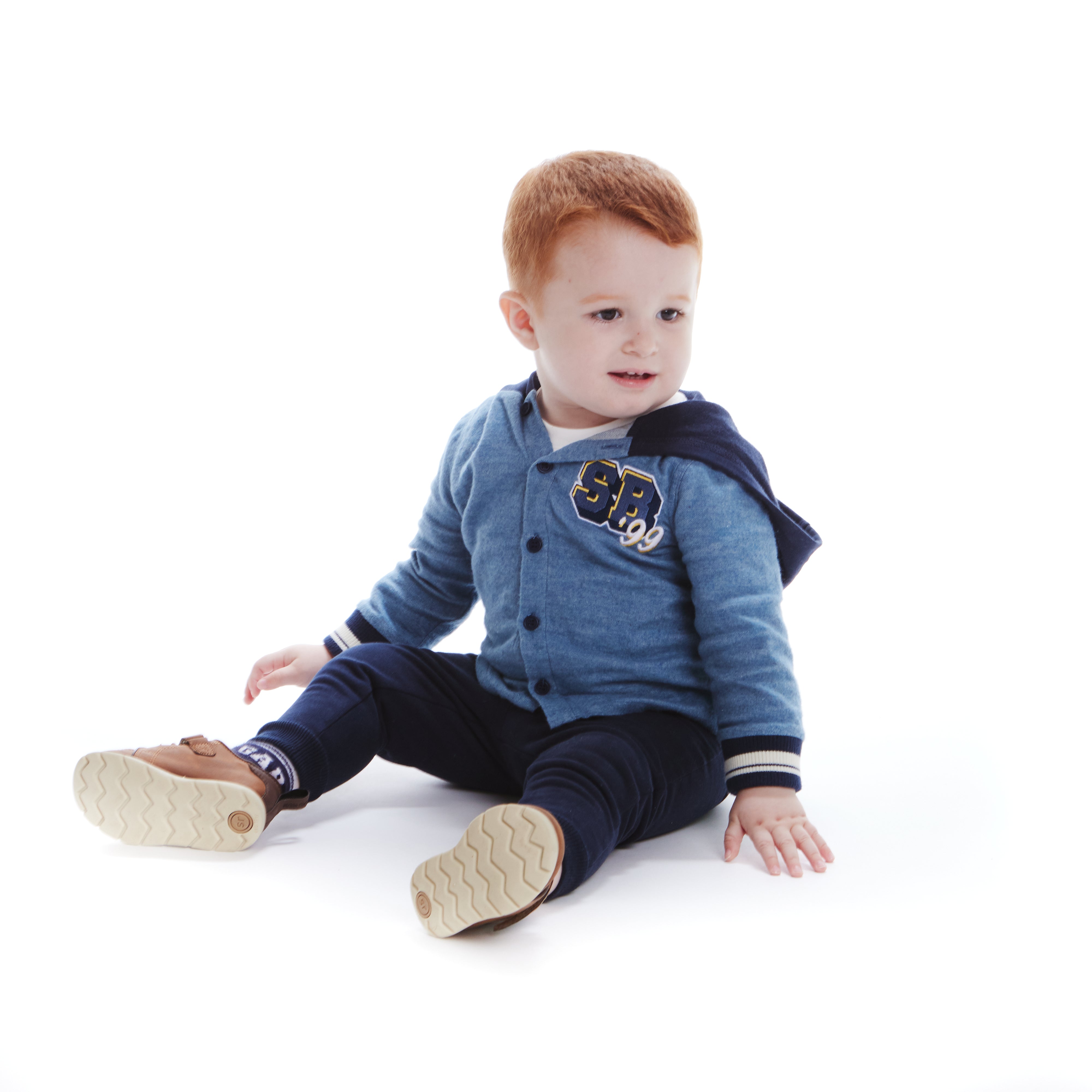 - Includes coordinating navy varsity pants with drawstring for a complete ensemble
