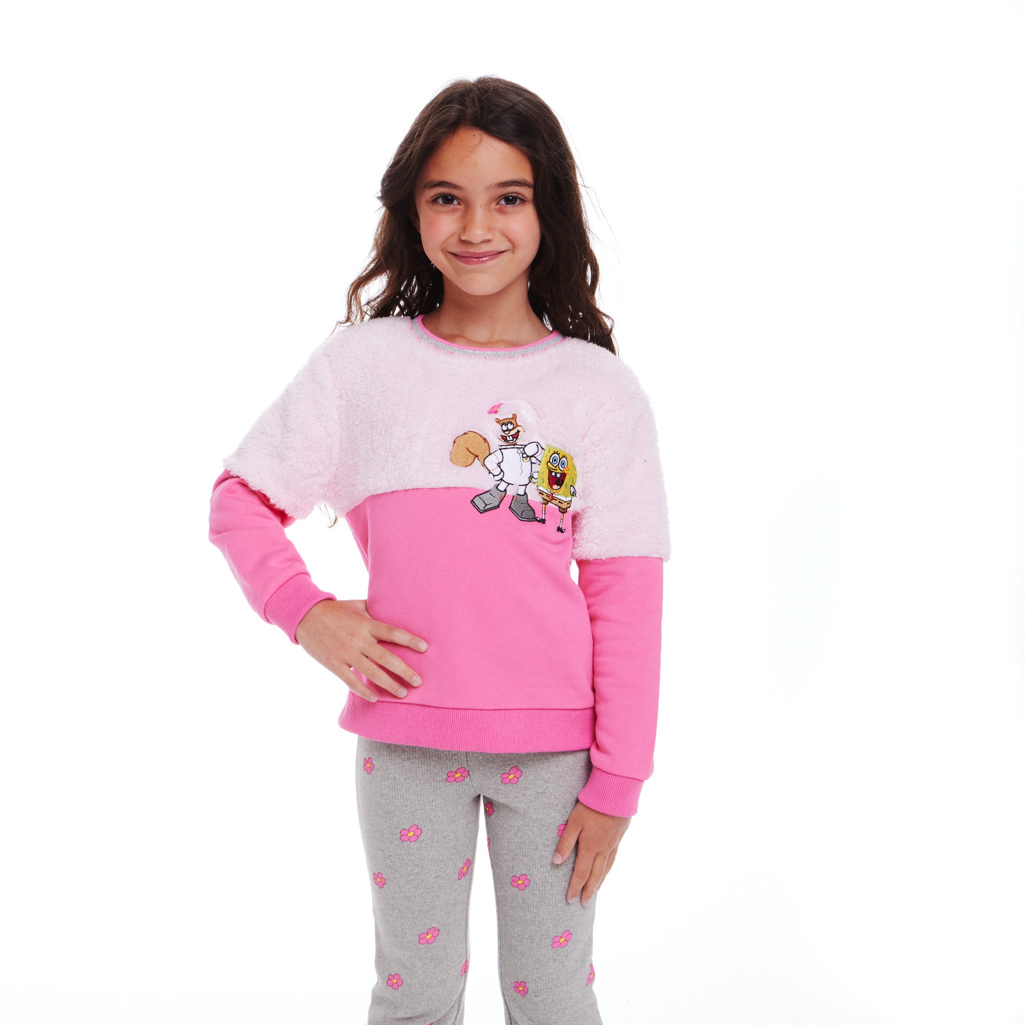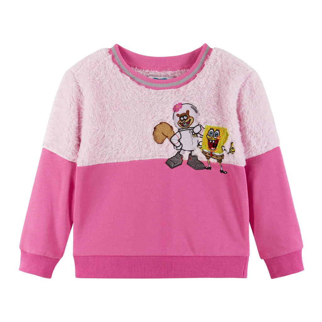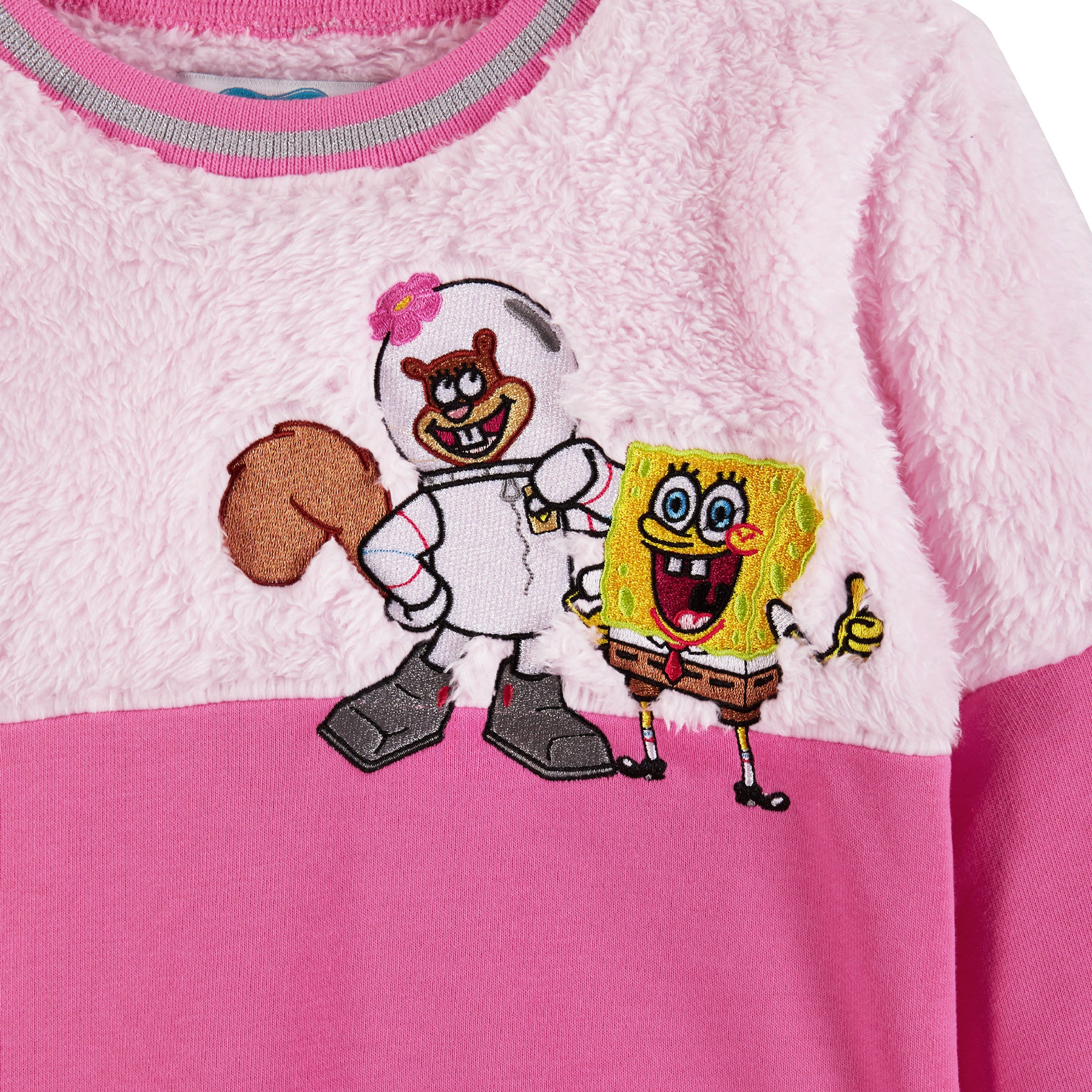 Dive into comfort and style with the SpongeBob SquarePants™ x Andy & Evan® Sweater & Ribbed Flare Legging Set. This adorable outfit features a cozy sherpa and French terry top adorned with a charming embroidery patch of SpongeBob and Sandy. Ribbed neck, cuffs, and hem ensure a snug fit, while the coordinating leggings boast a playful floral pattern and an elastic waist for easy wear. Perfect for playdates, family outings, or lounging at home, this set combines whimsy and practicality for any young SpongeBob fan.