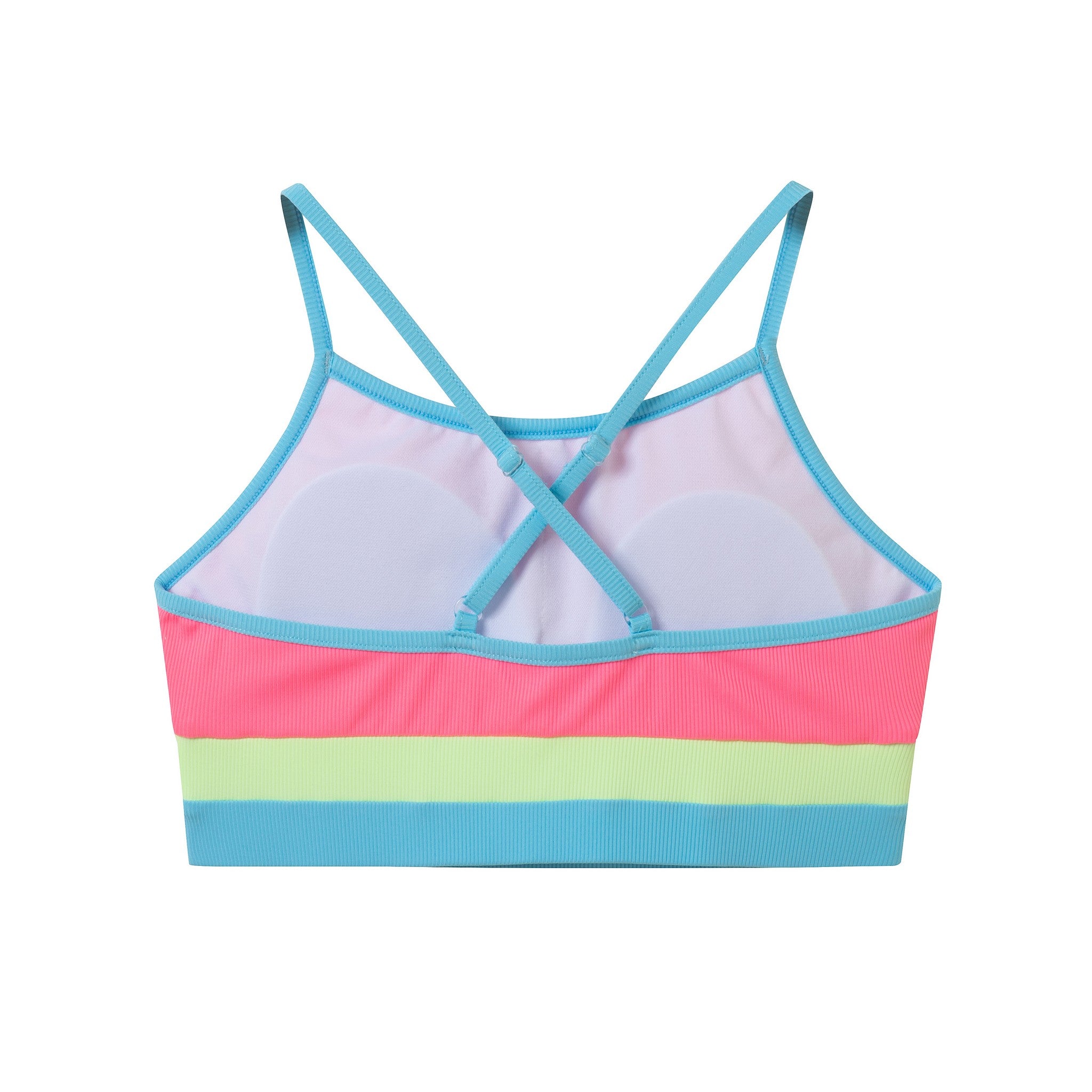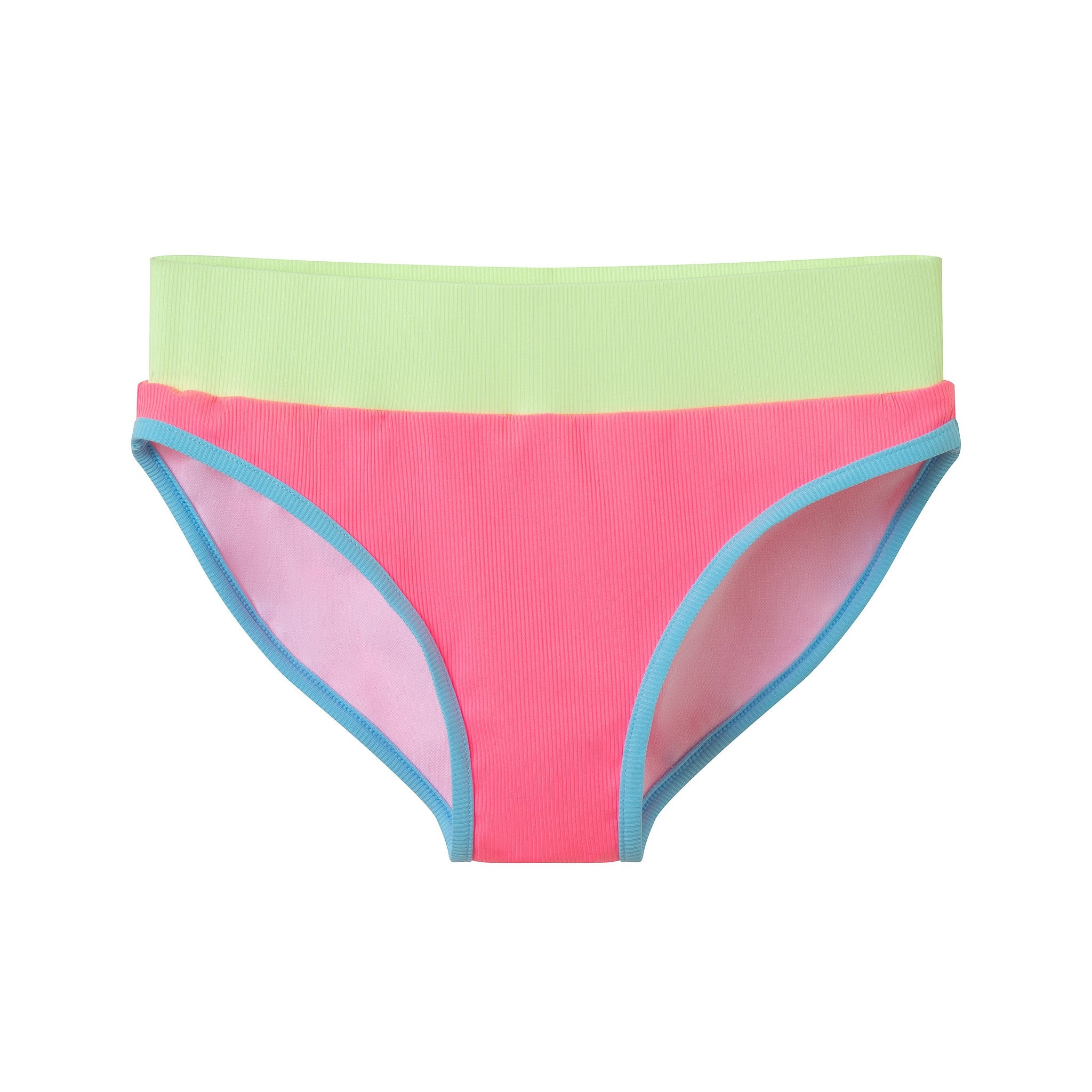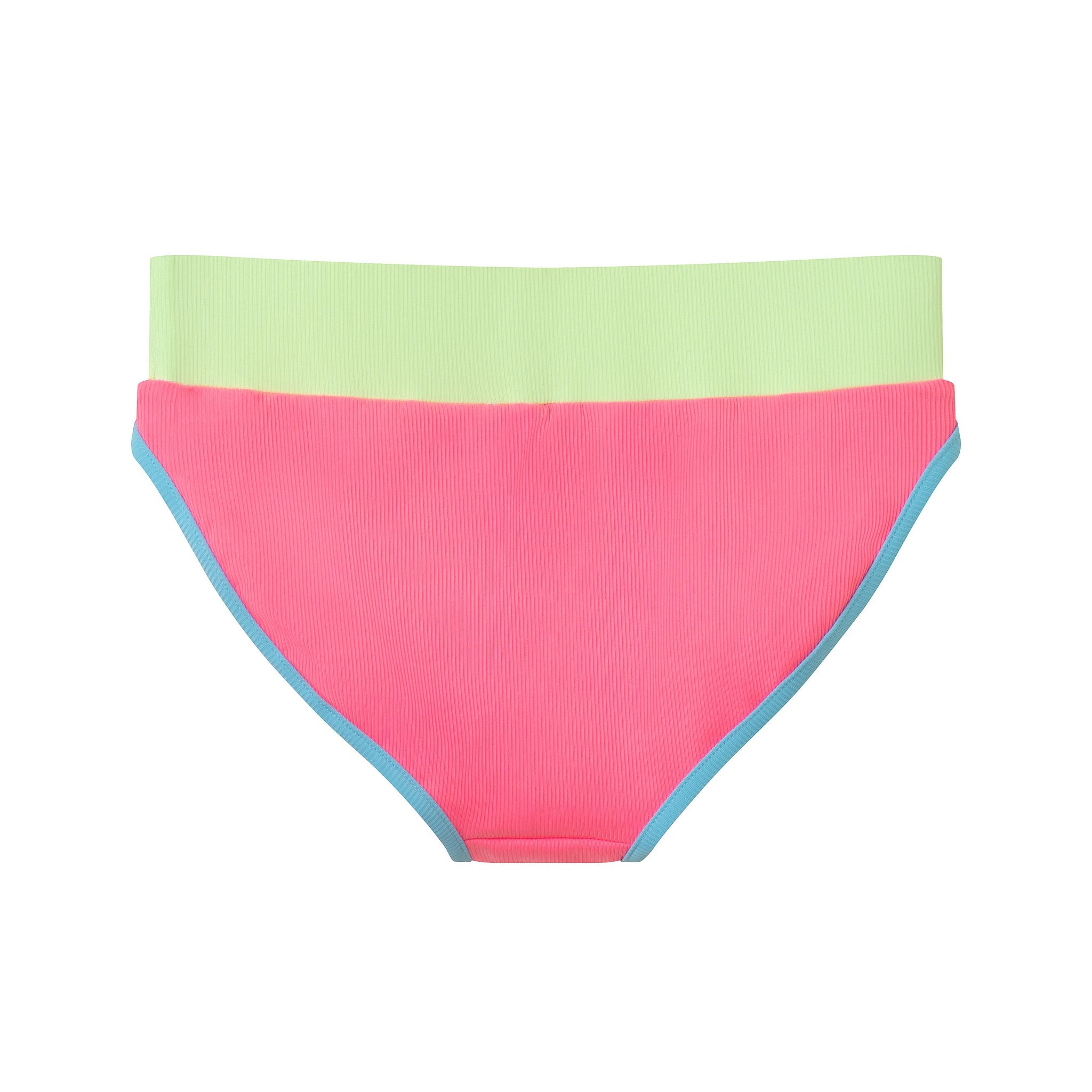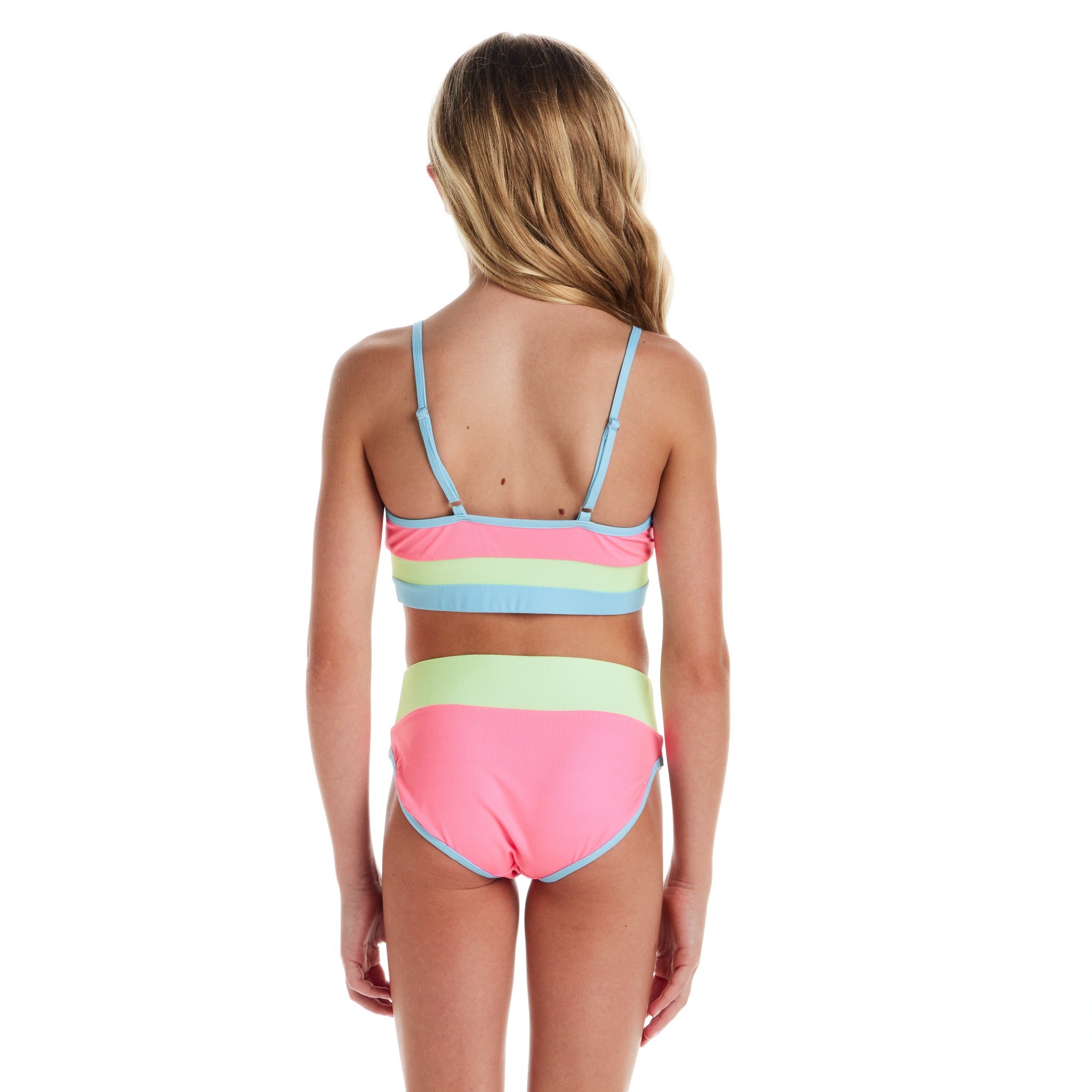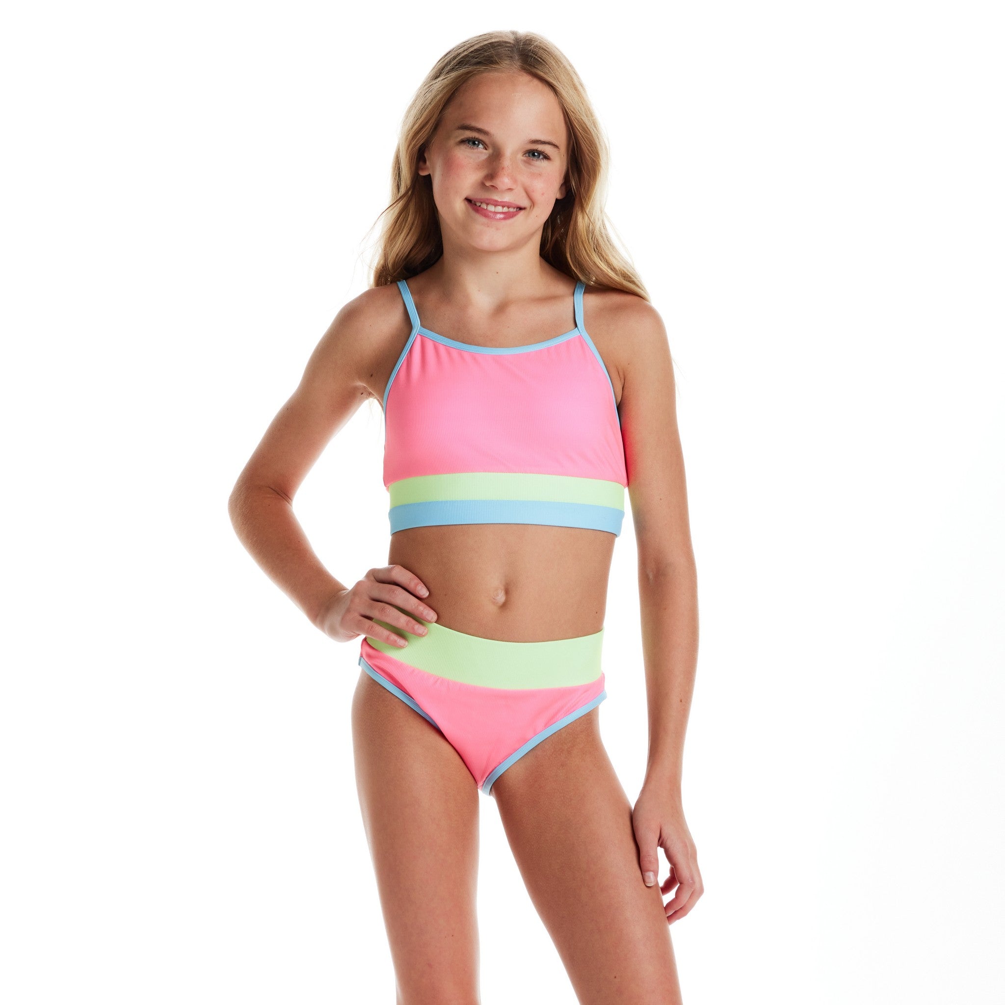 Bright, bold, and totally beach-ready — this ribbed colorblock bikini is made for tweens who love making a splash in vibrant style. With sporty vibes, soft rib texture, and fun pops of pink, aqua, and peach, this set keeps her comfortable, confident, and ready for every sunny adventure.