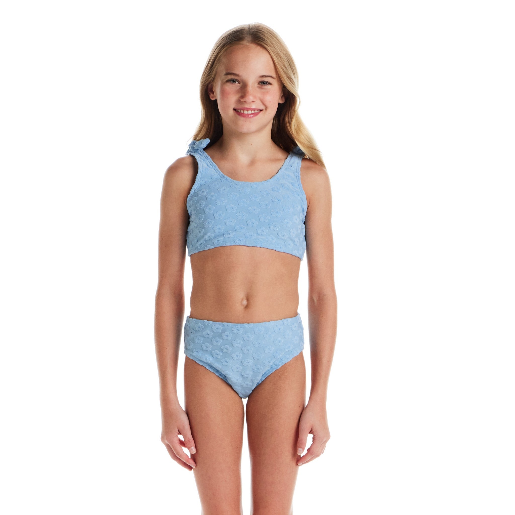 - Charming Terry Daisy Pattern: Adds cheerful texture and extra personality to her swim look.