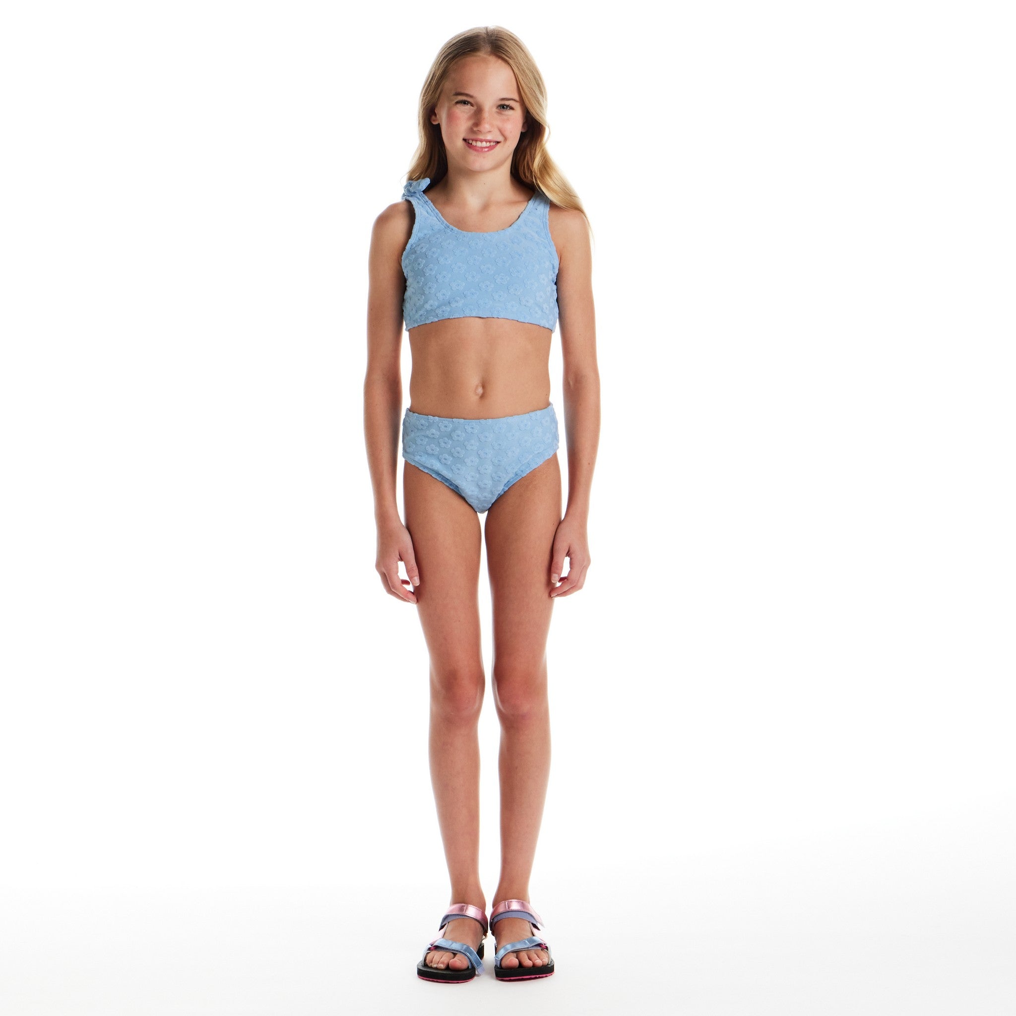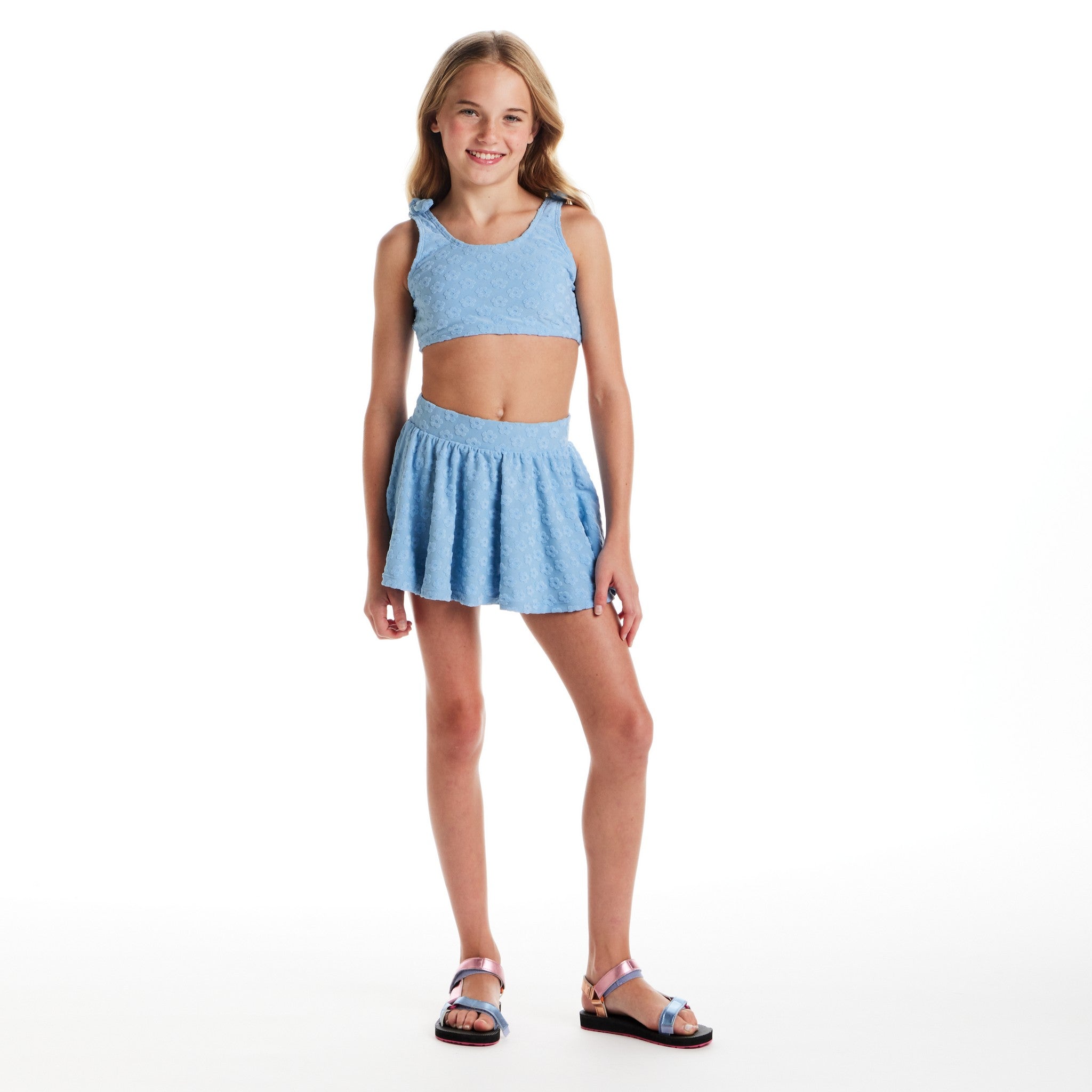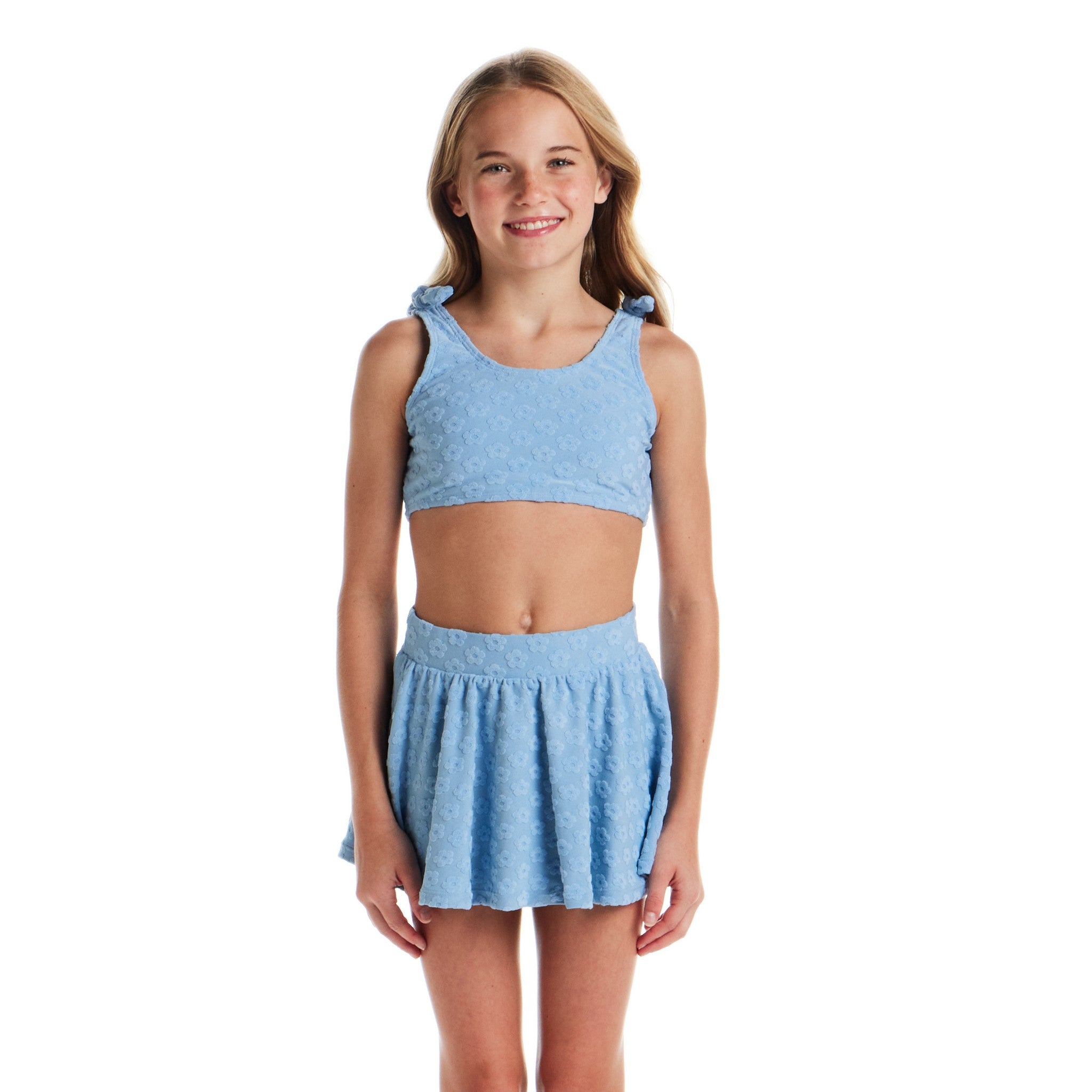 Let her dive into sunshine days with a set that does everything: swimming, twirling, hanging out poolside — and looking effortlessly cool while doing it. This 3-piece terry set blends soft texture, sweet details, and all-day comfort, giving tweens the perfect mix of sporty, cute, and beach-day ready. With removable pieces she can mix, match, and move in, it’s the ultimate warm-weather staple.