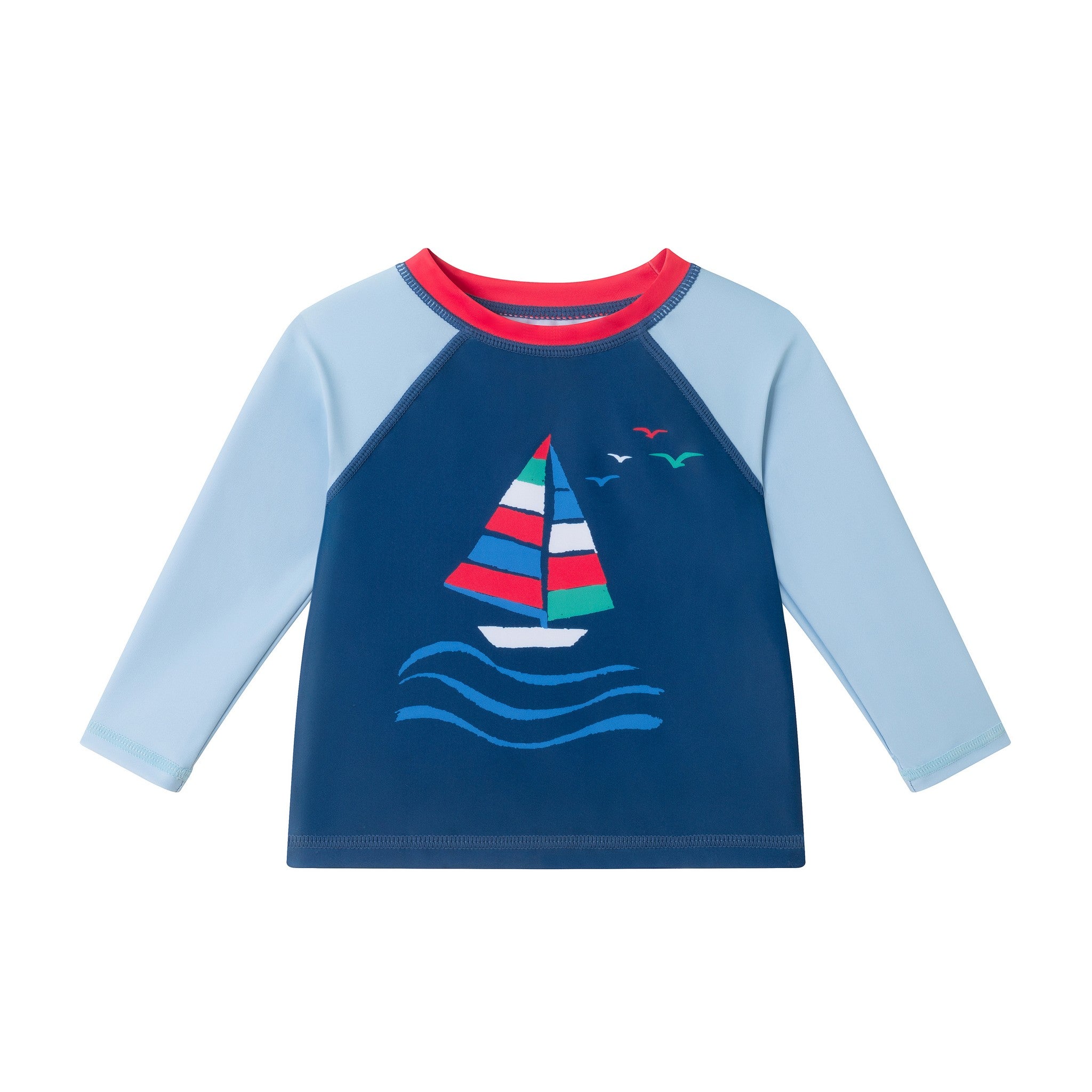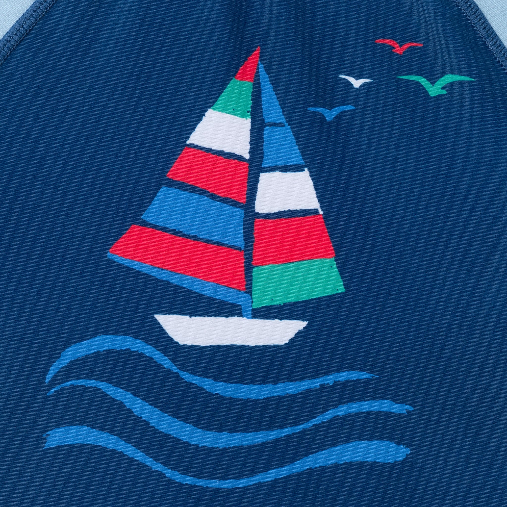 Sweet nautical style meets soft, sun-safe comfort in this Infant Boys Navy Sailboat Long Sleeve Rashguard Set. Designed with little ones in mind, this two-piece swim set features a cozy long sleeve rashguard with a cheerful sailboat graphic and matching swim trunks with an allover sailboat print. Perfect for first pool days, beach strolls, and warm-weather vacations, it offers gentle stretch, easy dressing, and built-in sun protection for worry-free water play.