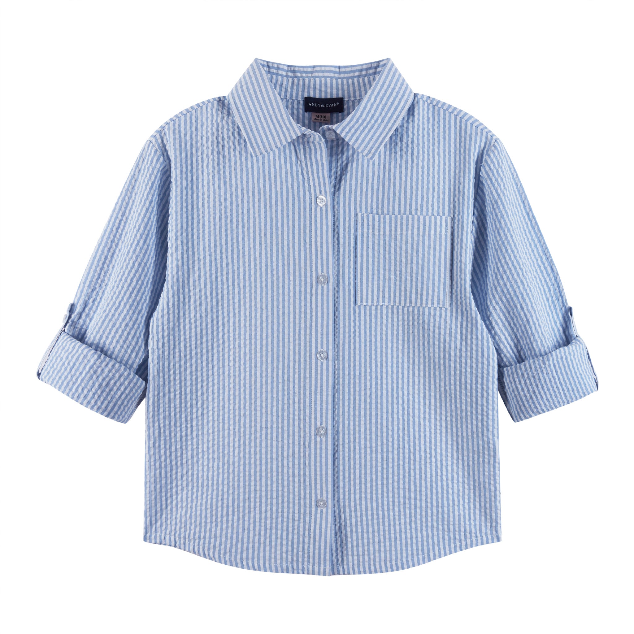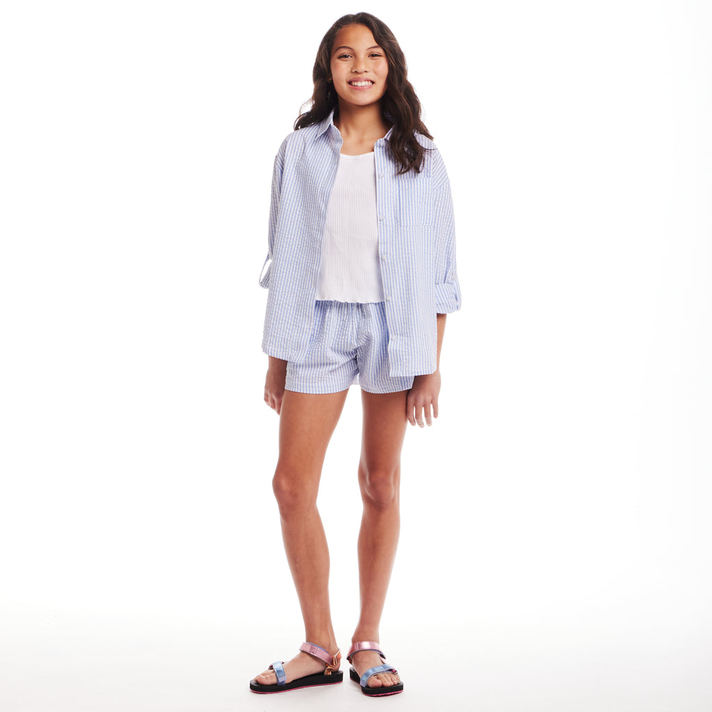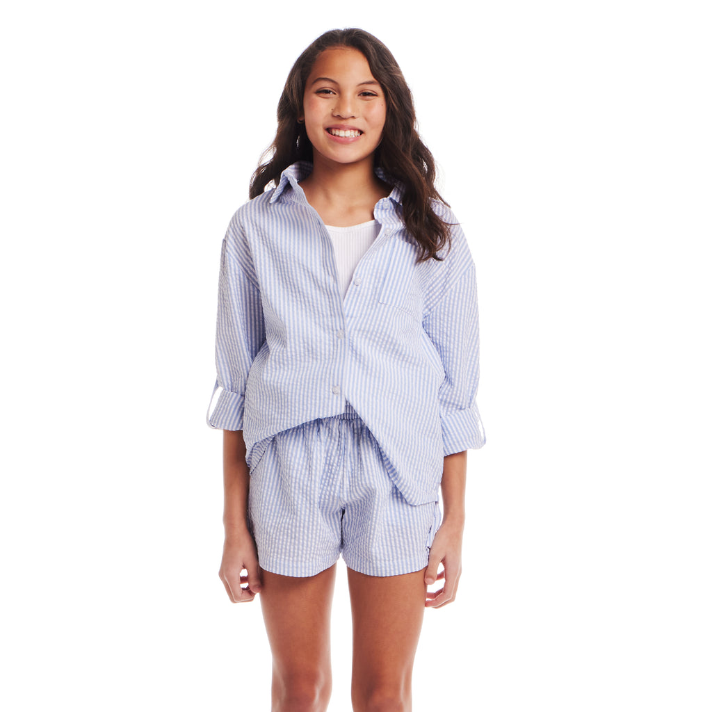 Kids (7-16) Striped Woven Buttondown & Short Set | Seaside Breeze