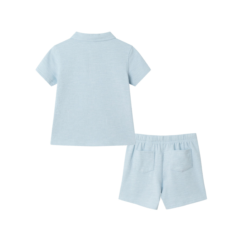 Kids (2-7) Textured Polo and Shorts Set | Light Blue Shark