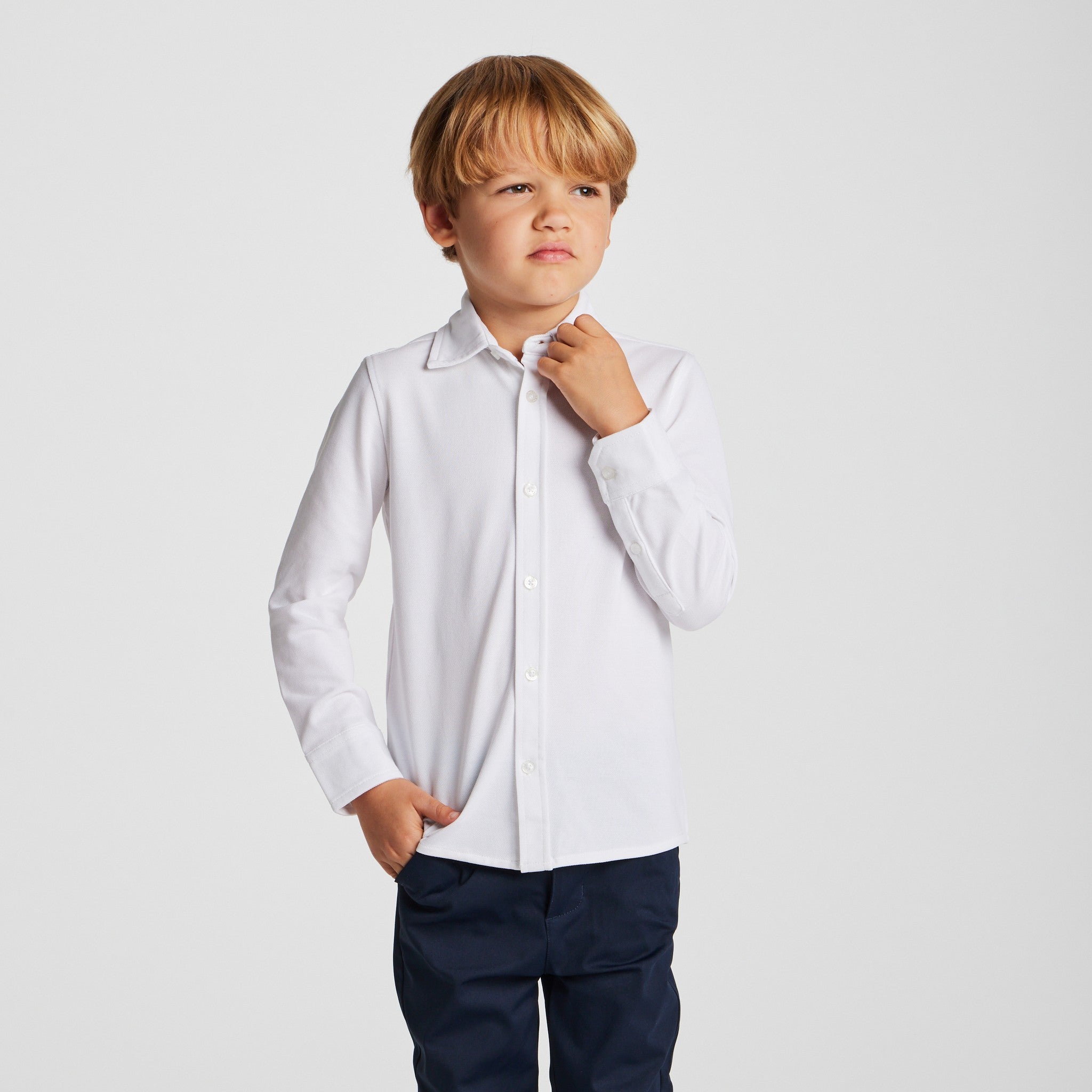 The Knit-Tech™ Shirt delivers the tailored look of a classic button-down with the freedom of a performance knit. Crafted from our signature soft piqué fabric with four-way stretch, it’s lightweight, breathable, and designed to move naturally — keeping kids comfortable through long days, special occasions, and everything in between.