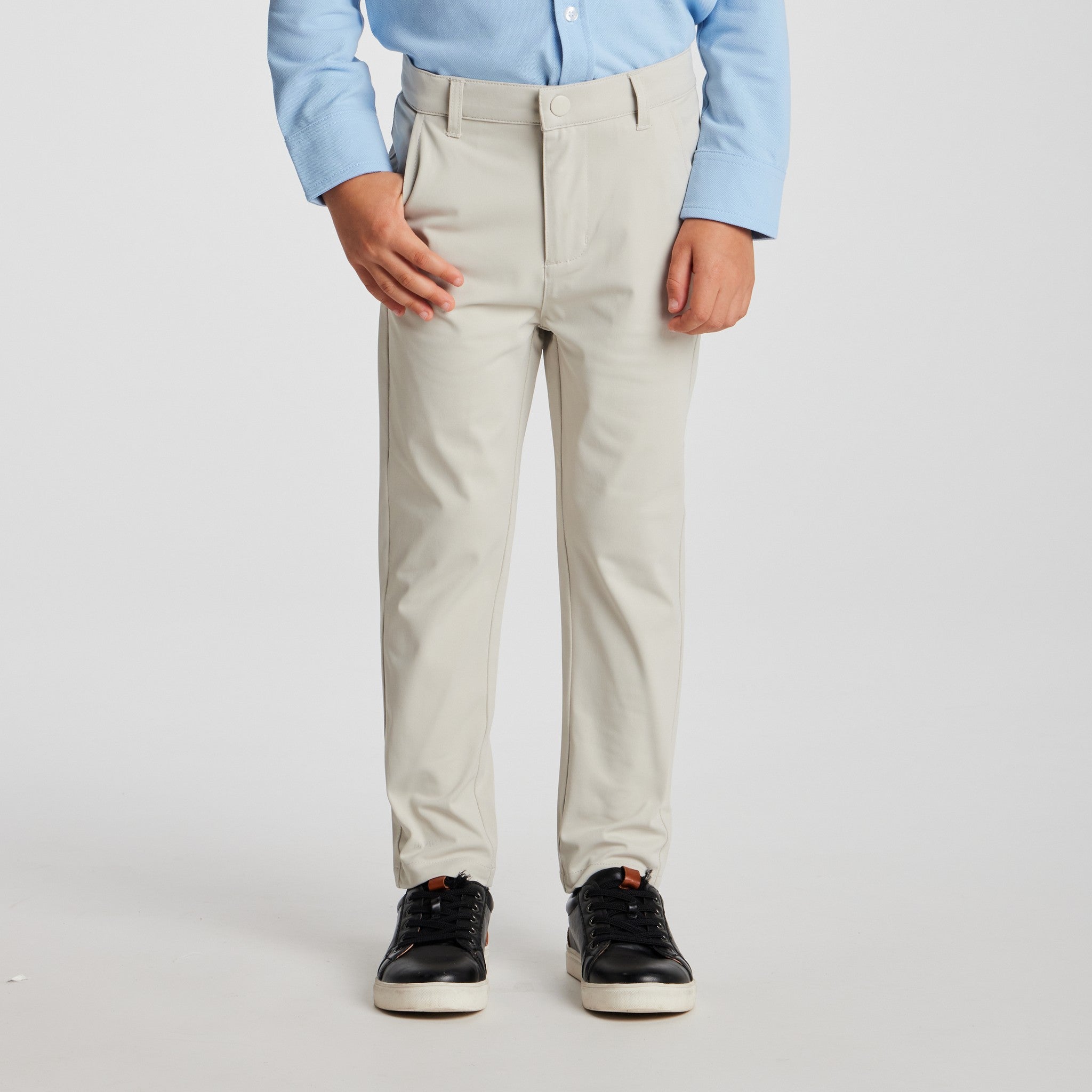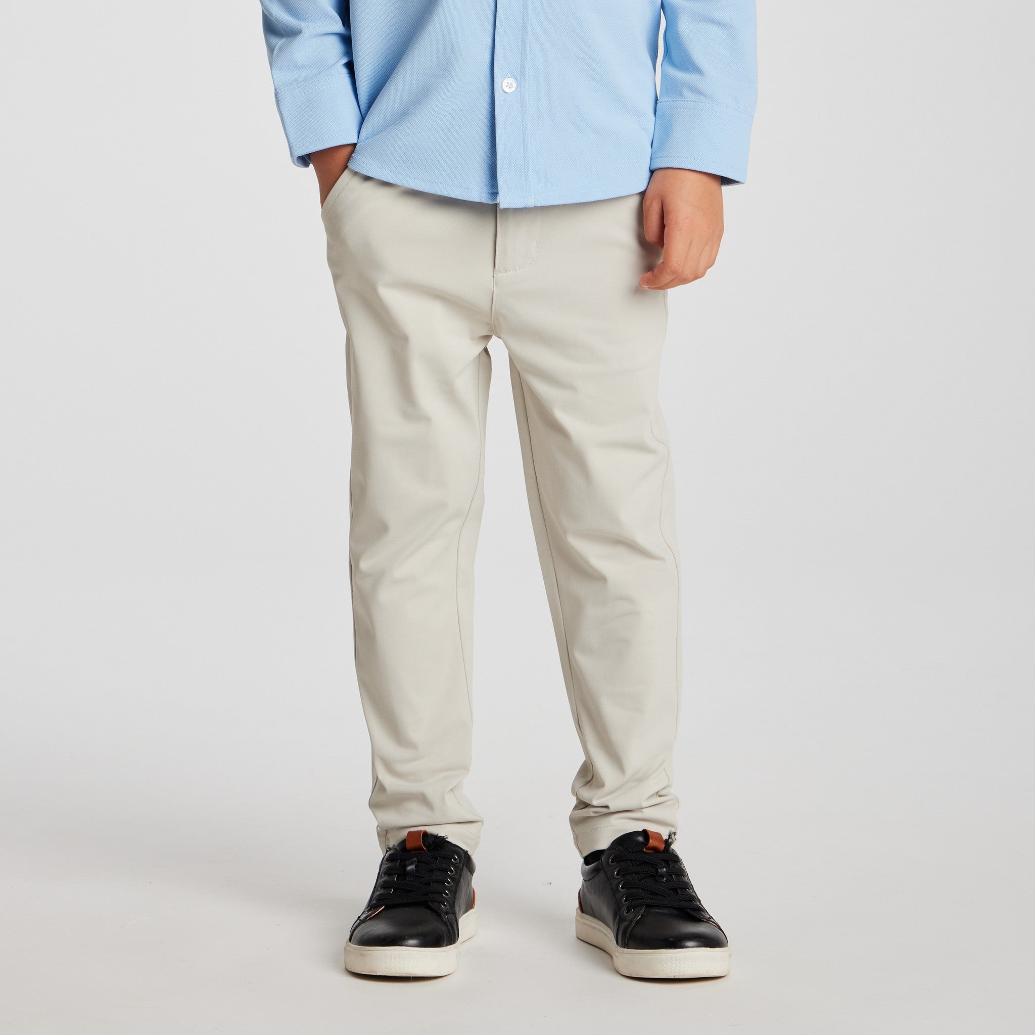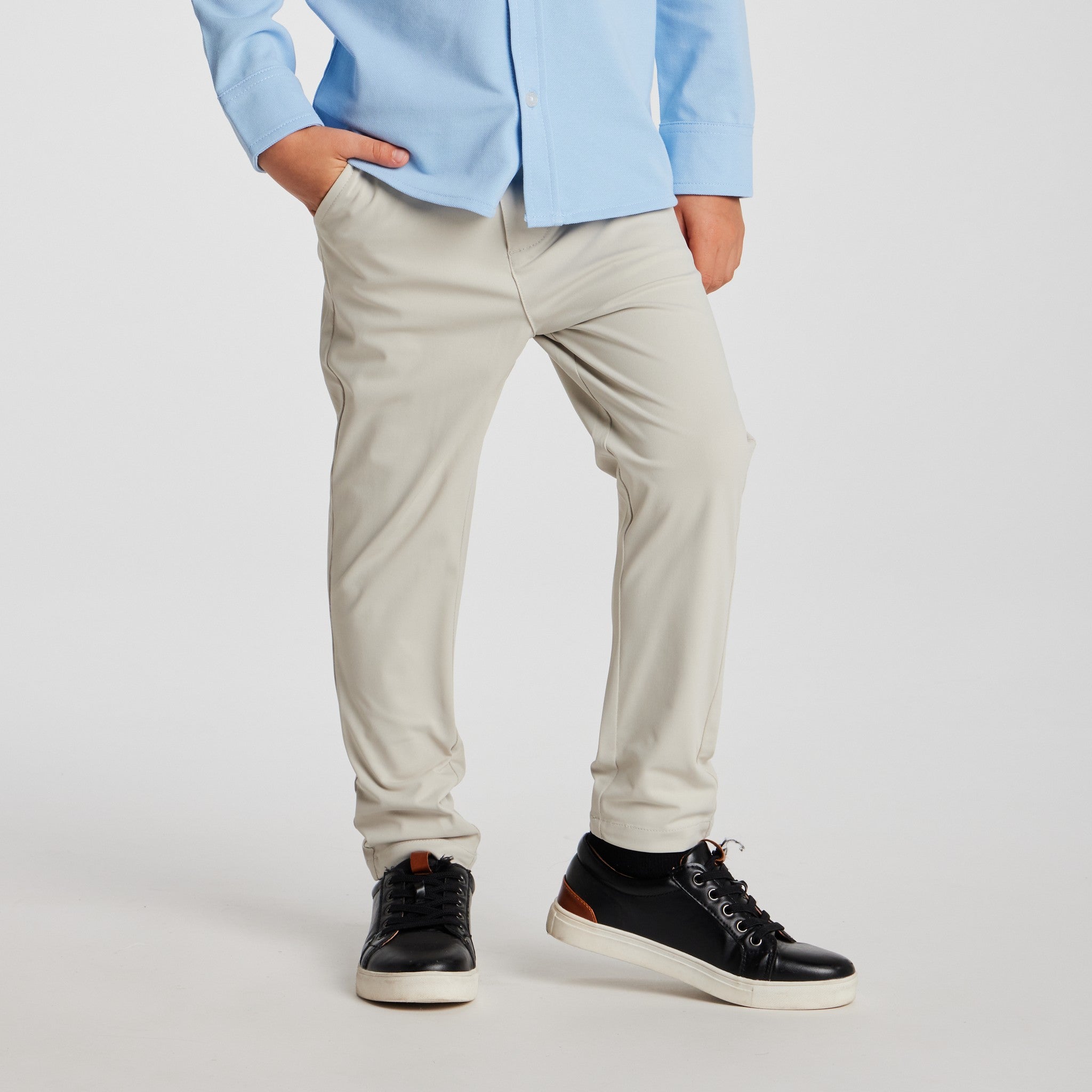 The Motion-Chinos™ deliver the clean, tailored look of classic chinos with the freedom of performance wear. Crafted from our motion-ready fabric with four-way stretch, they move effortlessly with the body, keeping kids comfortable through long events, school days, and special occasions.