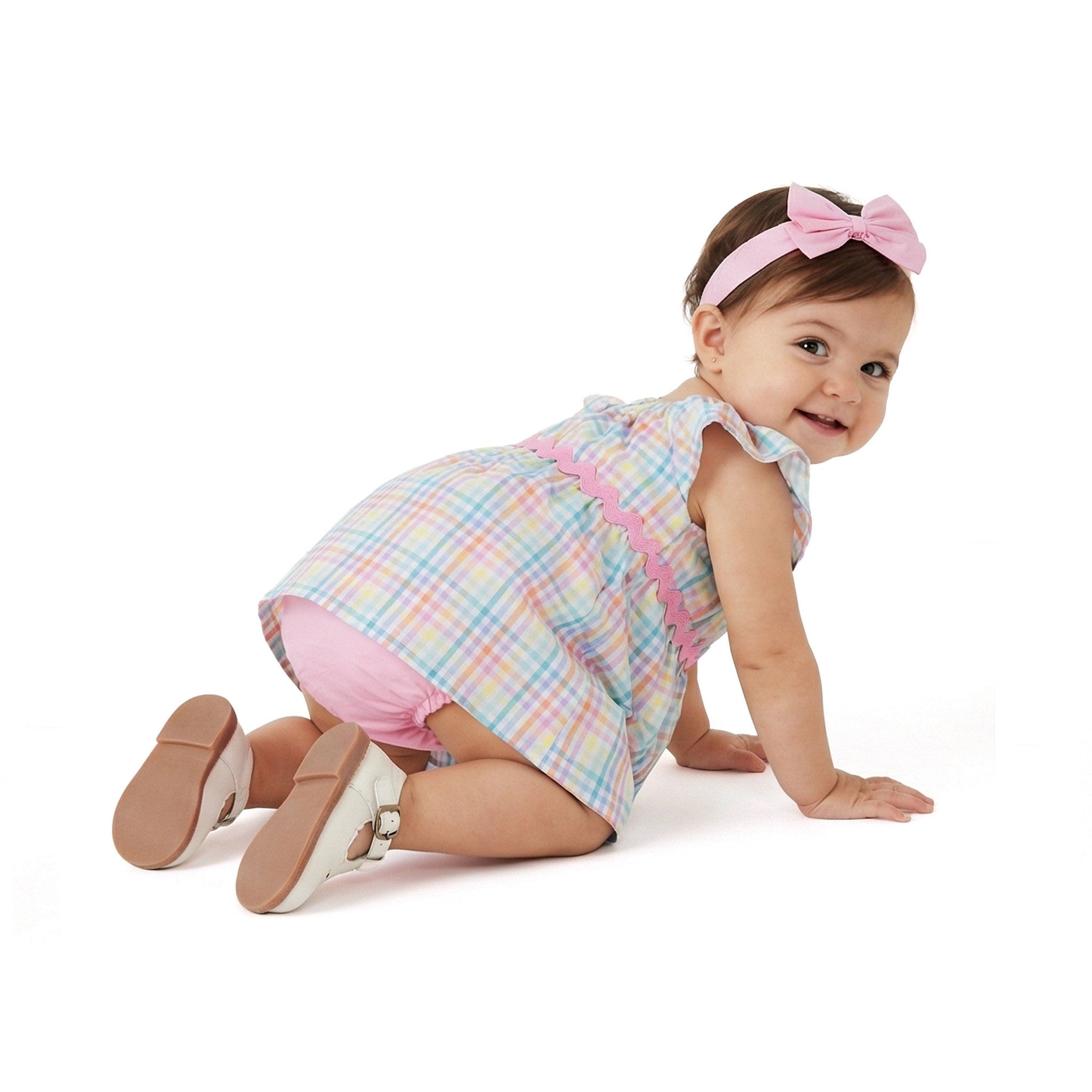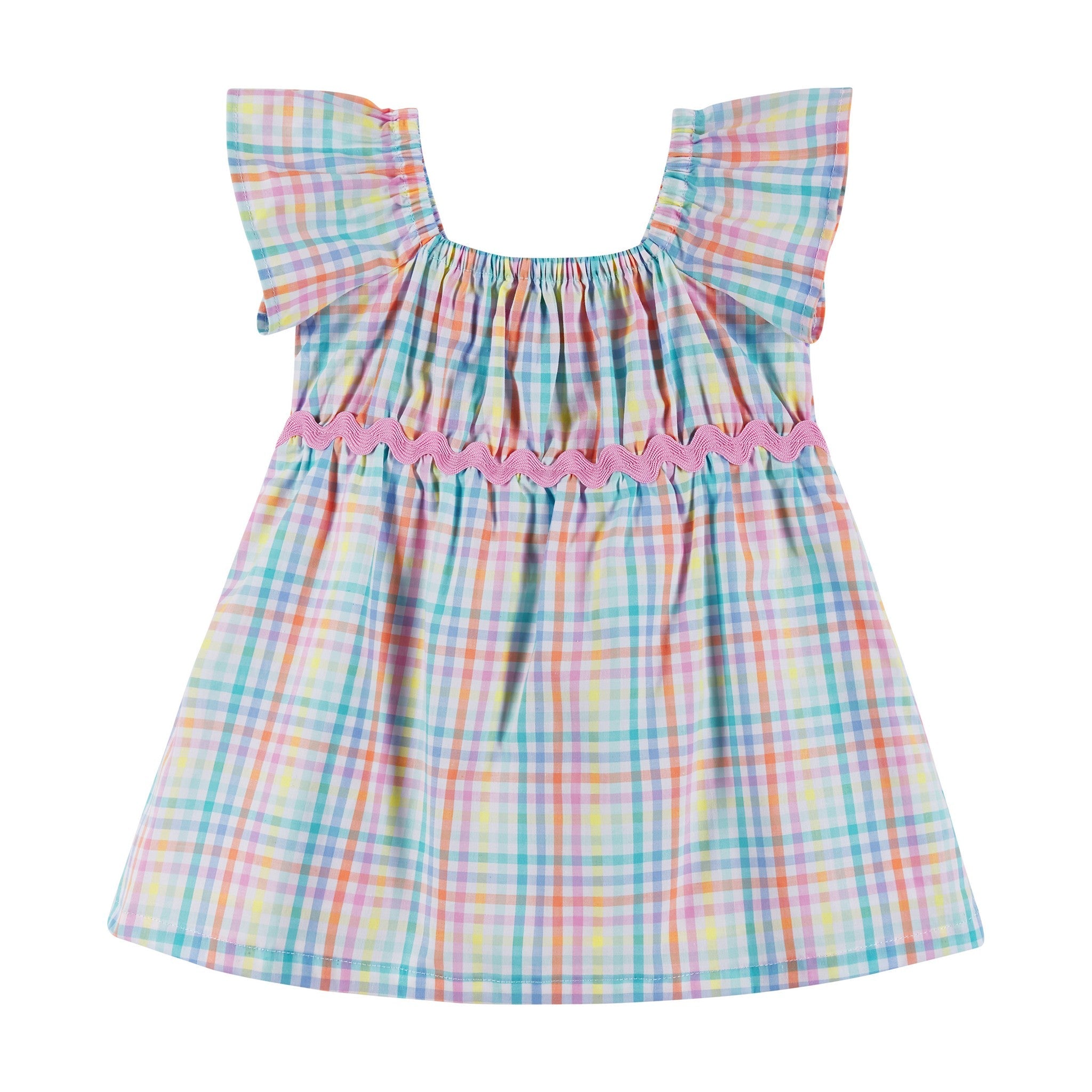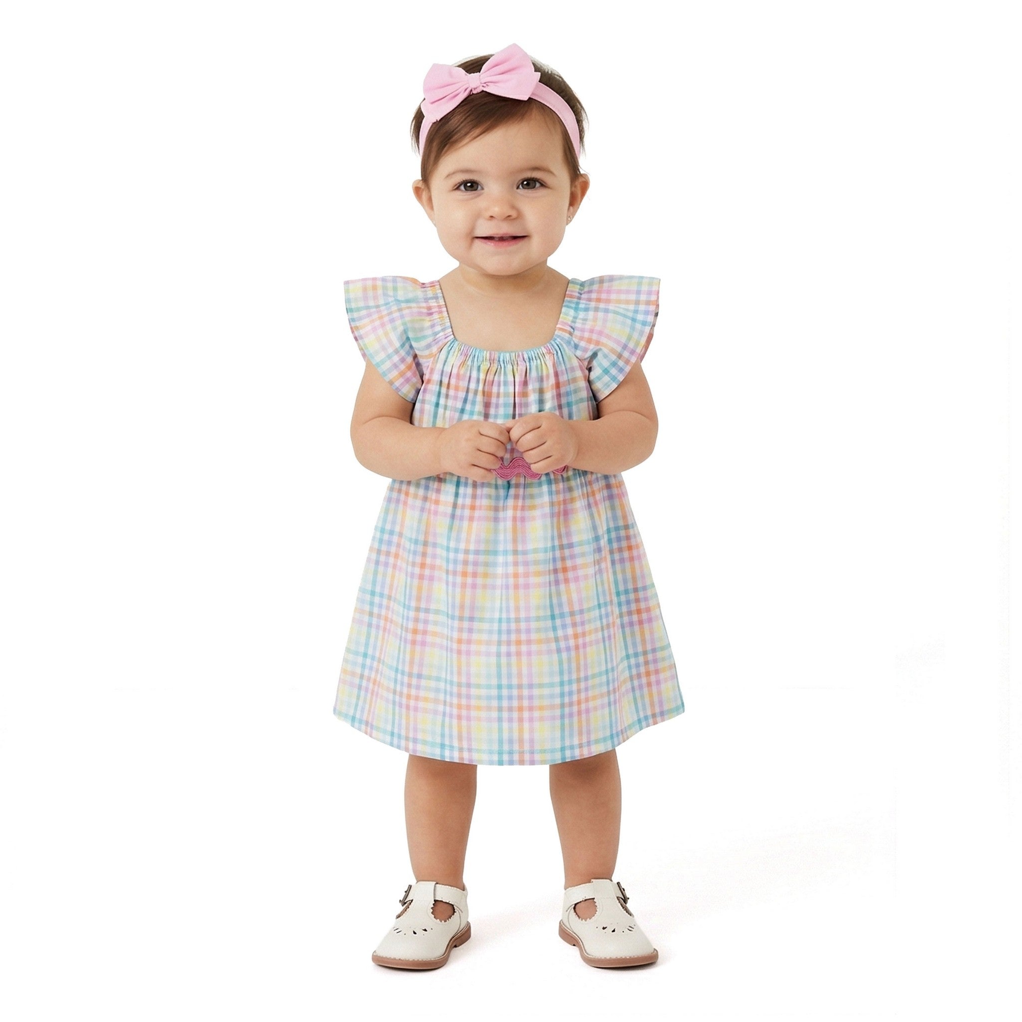 Start her day with a burst of color in this sweet and sunny plaid dress! Featuring a cheerful pastel pattern and a matching diaper cover, this set is a great choice for family brunch or outdoor play. It is a light and airy outfit that keeps her feeling cozy and looking adorable from her morning nap to her afternoon stroll.